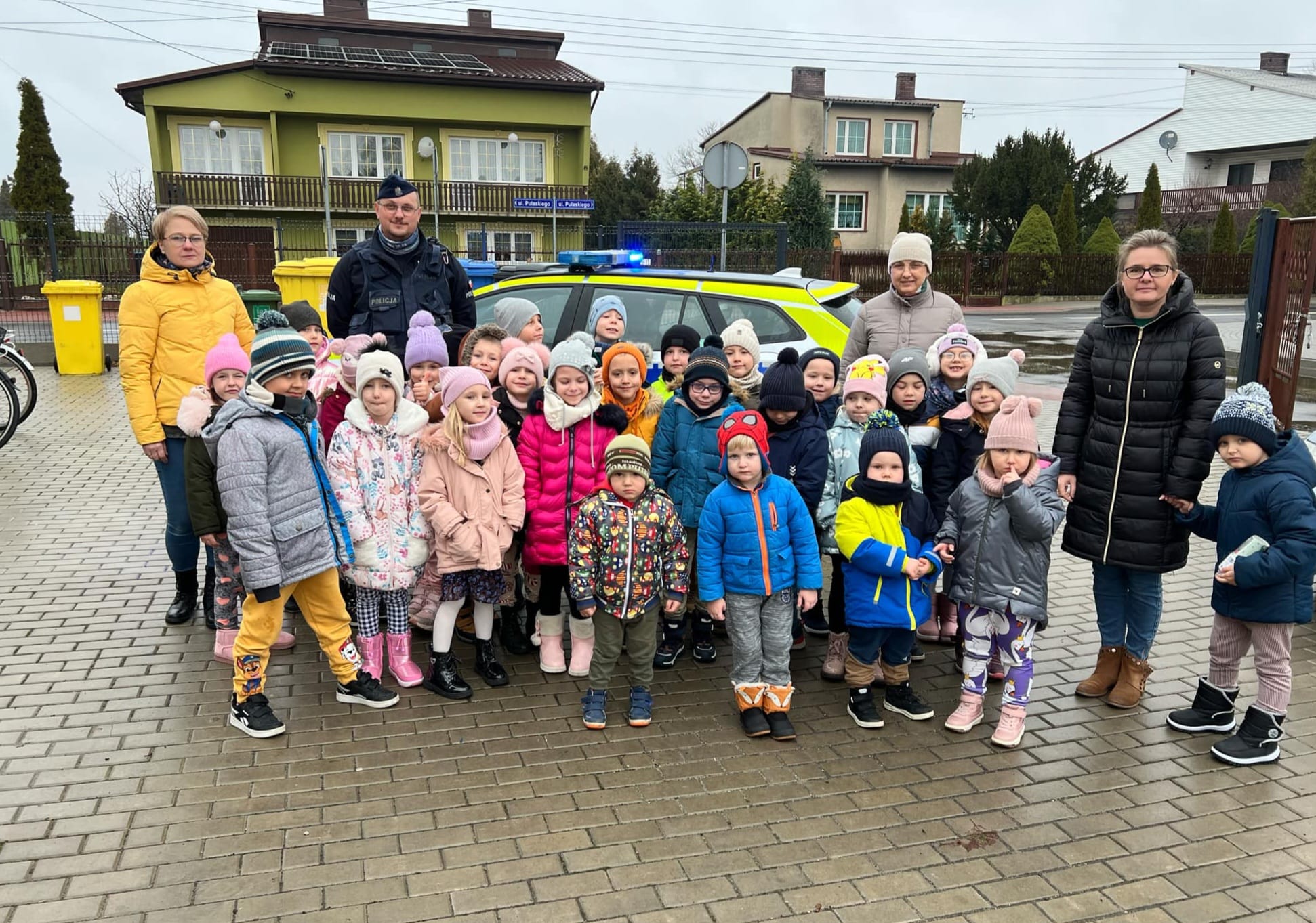 Zapoznanie z zawodem policjanta, bezpieczne poruszanie się po drogach zimową porą, ubrania z elementami odblaskowymi, bezpieczeństwo na drodze, bezpieczna jazda samochodem, numery alarmowe to zagadnienia, które dzieci w trakcie spotkania z Policjantem Panem Krzysztofem z Komisariatu Policji w Koniecpolu wspólnie omawiały. Podczas spotkania przedszkolaki zadawały pytania oraz dzieliły się swoimi doświadczeniami. Dużą atrakcją był radiowóz policyjny, zaparkowany na placu przedszkola. Wspólne zdjęcia były zwieńczeniem tej niecodziennej wizyty. Serdecznie dziękujemy Panu Policjantowi za lekcję edukacyjną i przybliżenie tak odpowiedzialnego zawodu, jakim jest zawód policjanta.